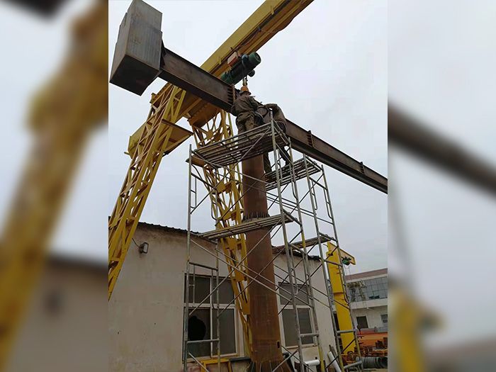 科威特客戶到河南安博公司視察旋臂吊的生產事宜,對設備的生產做工非常滿意